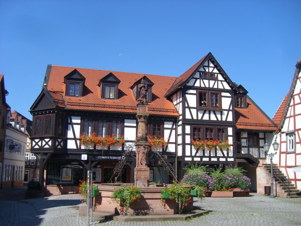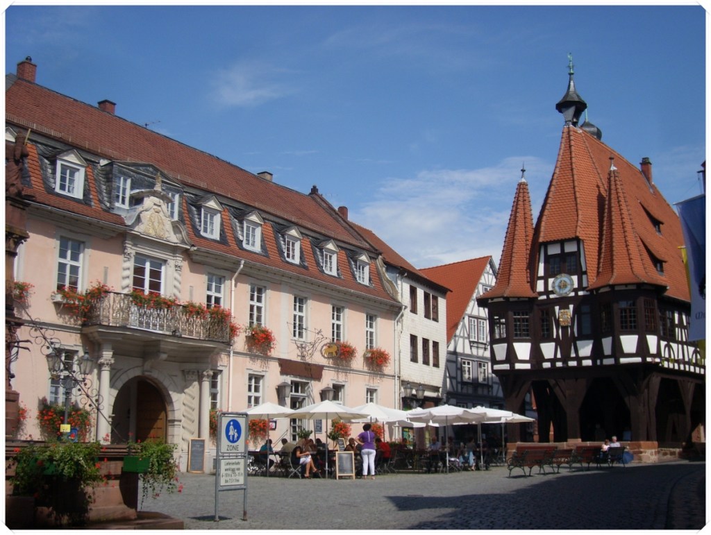 Colourful timber framed buildings in various patterns are a feature of Michelstadt and throughout the Odenwald area.