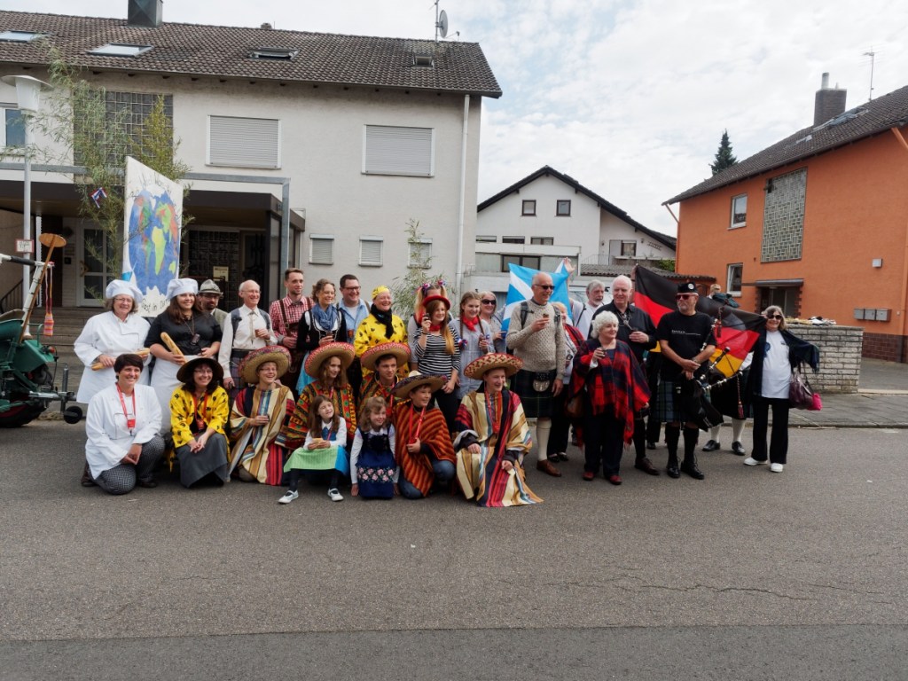 Accompanied by a friend from our sister organisation, Schottland Vereinigung who is the Pipe Major with the Odenwald Pipes and Drums, our small delegation contributed in song as they were piped through the streets in a real carnival atmosphere.