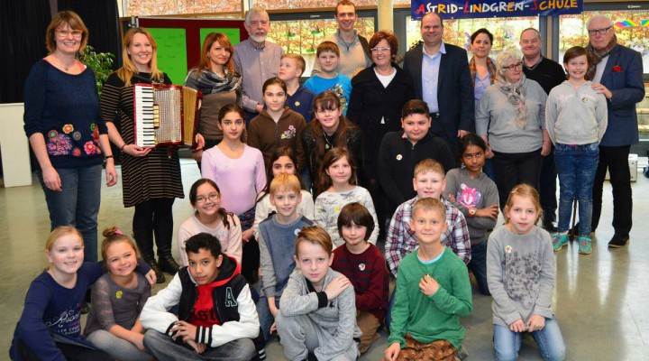 The photo shows Susanne and Gareth at The Astrid Lindgren School with school pupils, staff, parent representatives, Councillor Oliver Grobeis, School Education Department Head, SLV and Odenwald Association members and a dear friend of the Odenwald Association, Horst Schnur, Odenwald Foundation.