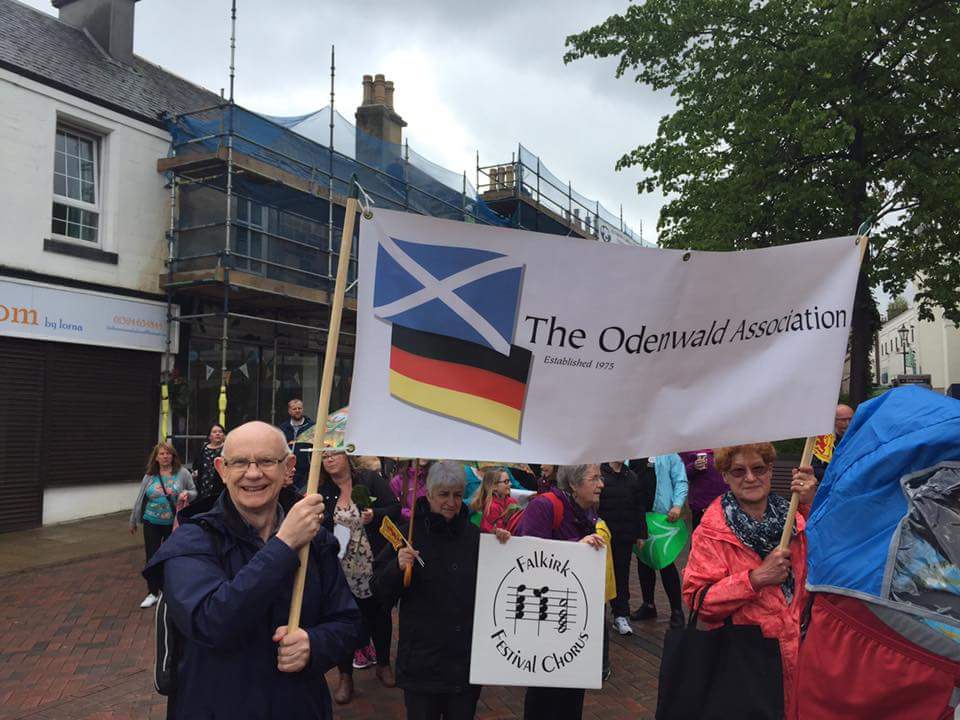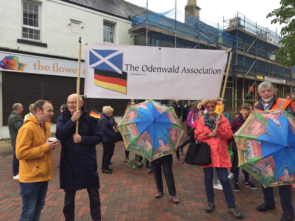 Carrying the Odenwald Association banner and sporting Erbach umbrellas, members gave out promotional leaflets to the crowd and enthused about the joys of twinning, the beauties of the Odenwald area and what great fun it is to take part in twinning activities. What are you waiting for? Join us and see for yourself.