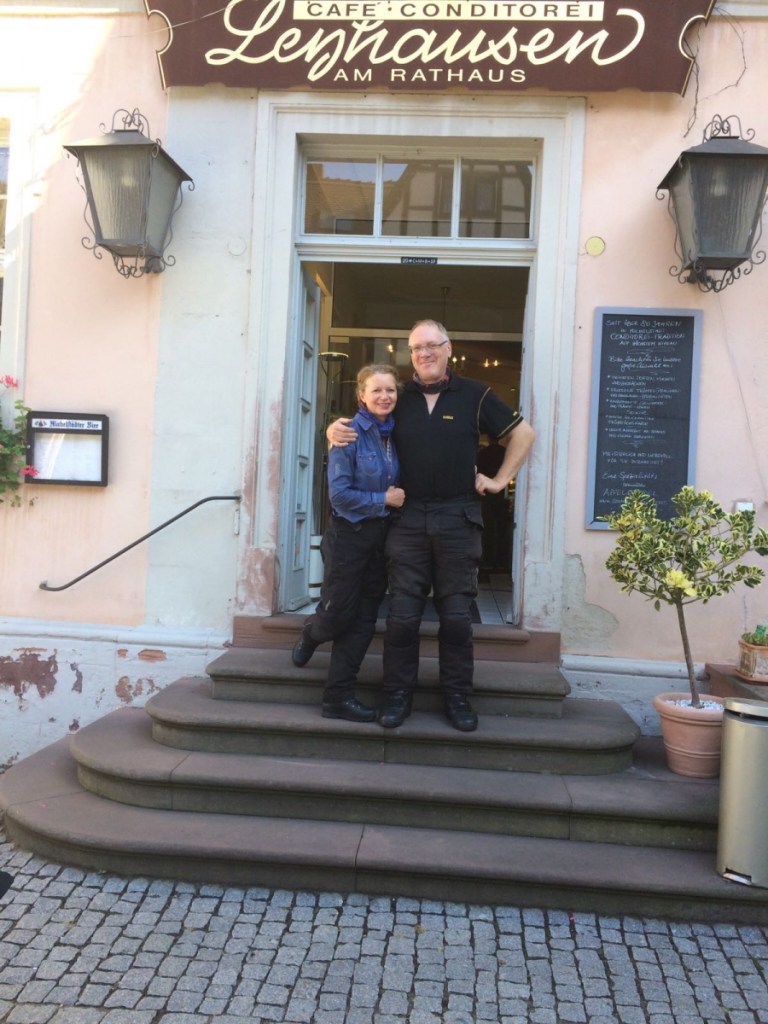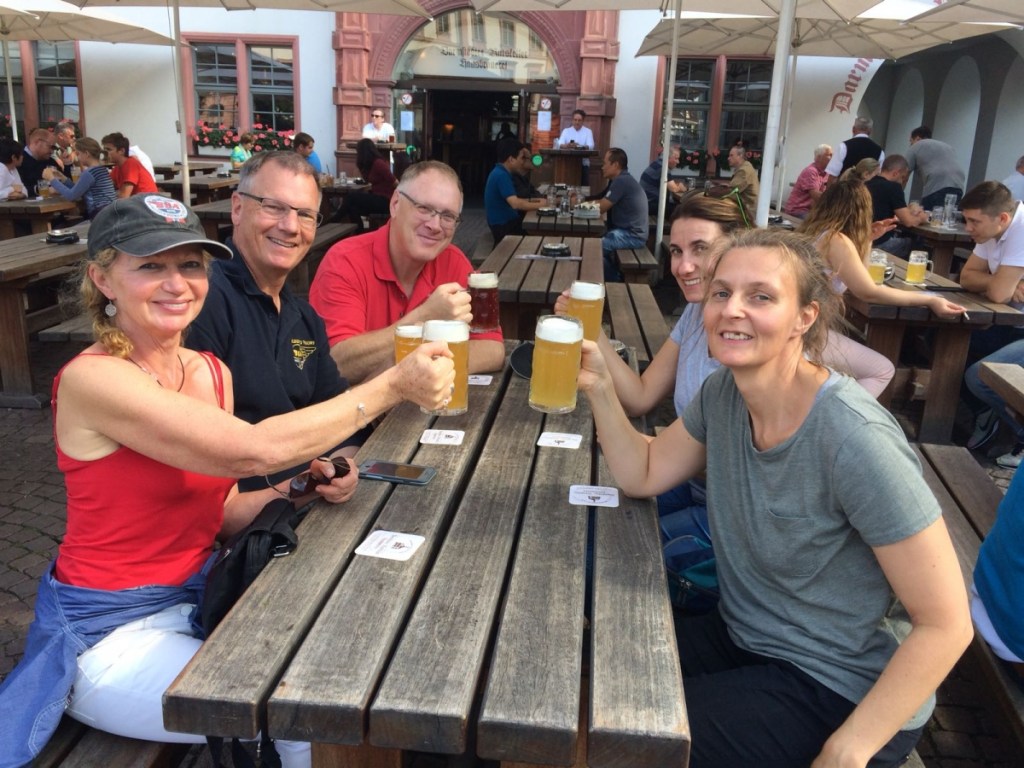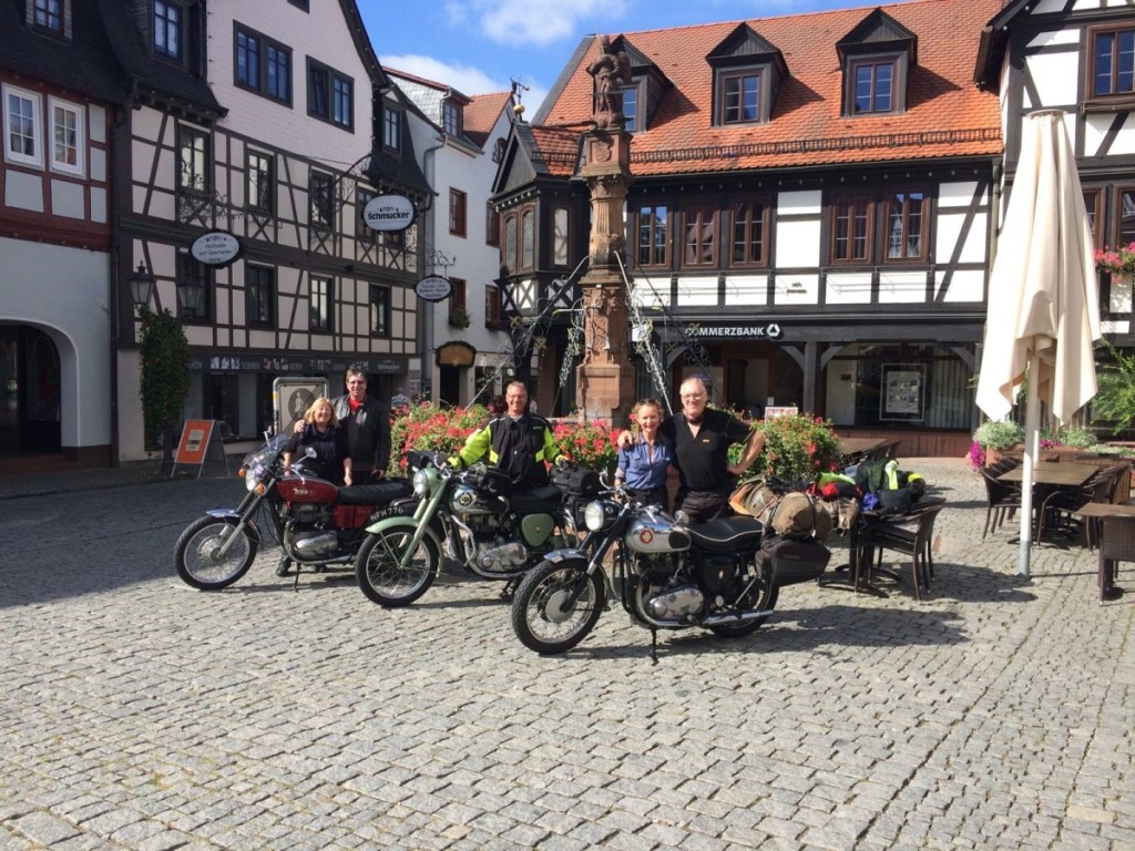 We were accompanied with friends from Australia and California also on their BSA motorcycles. First stop en route was a visit to our friends Jutta and Vroni in Babenhausen. Jutta and Vroni lived with me in Falkirk in 1997 whilst they undertook a three month student placement in Development Services at Falkirk Council. On arrival, we were treated to a wonderful traditional Hessen meal at Vroni’s house as we laughed and reminisced about the great times we had enjoyed together in Scotland over 20 years ago!