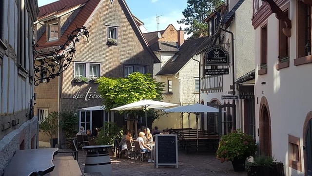From the start at Wald-Michelbach to Mörlenbach, the track is around 10 kms. At Mörlenbach we walked across the road into town and soon found a restaurant with a sunny courtyard to have a light lunch. Martina arrived with baby Fynn, our first meeting and he is a lively, smiley wee boy who looks full of mischief and was interested in everything.