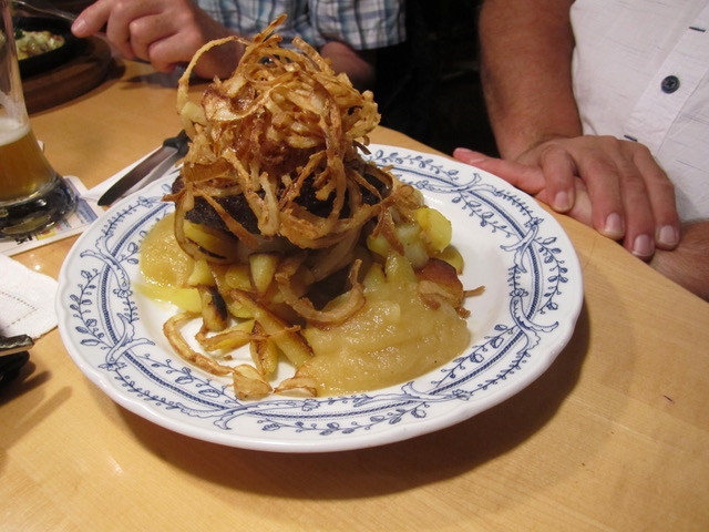 The next day, we visited some of the Roman remains on the Limes, including the bath house near Würzberg and the Limesturm at Vielbrunn, in the company of Hanne and her father, Erich, who is also very knowledgeable about the history of the Odenwald and the Roman occupation. After lunch, we had to stop in the village of Würzberg to give way to a parade of decorated floats, however, as we were given goodies such as home made biscuits and Schmucker beer, we didn’t complain. As we’d had a big lunch, we just shared a Vesperteller of meat, cheese and bread at the Rathaus Bräuerei back in Michelstadt.
