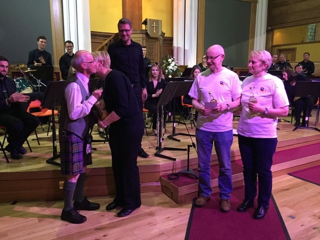 On their last night, it was our turn to entertain them at the restaurant next to the hotel where they were staying, with Walter, Gray, Andy Christie, and Rod Aird, performing for them. We hope to meet up again in August in Germany, and maybe welcome them back to Falkirk in the future.