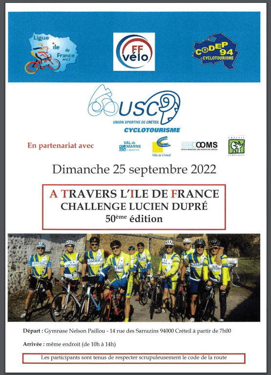 Two cyclists from Falkirk Cycle Club have been invited to Créteil to take part in this year’s Cyclotourisme event on 25 September organised by L’Union Sportive de Créteil (USC).
