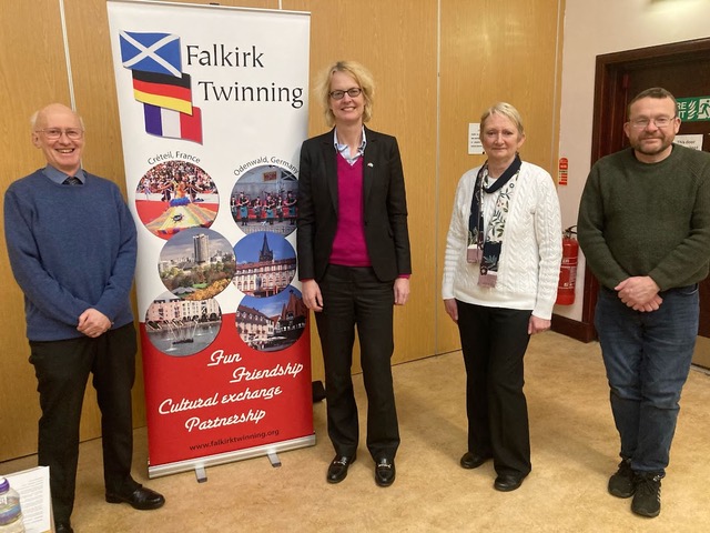 German Consul, Christiane Hullmann, came over from Edinburgh to talk to the Odenwald Association on Tuesday, 11th February. She told us about her career to date which has included posts in Kyiv, Berlin, Brussels, the Balkans, and in New York at the Permanent Mission to the UN. She also told us about the work of the Consulate, dealing with passports, visas, and citizenship, and encouraging trade, cultural, and scientific collaborations between Scotland and Germany. She is passionate about promoting German language-learning in schools and higher education, and stressed the importance of twinning groups such as ours, especially in the wake of Brexit. After the talk, Ms. Hullmann stayed to chat and answer questions over German-style refreshments of Stollen, Lebkuchen and Pretzels.